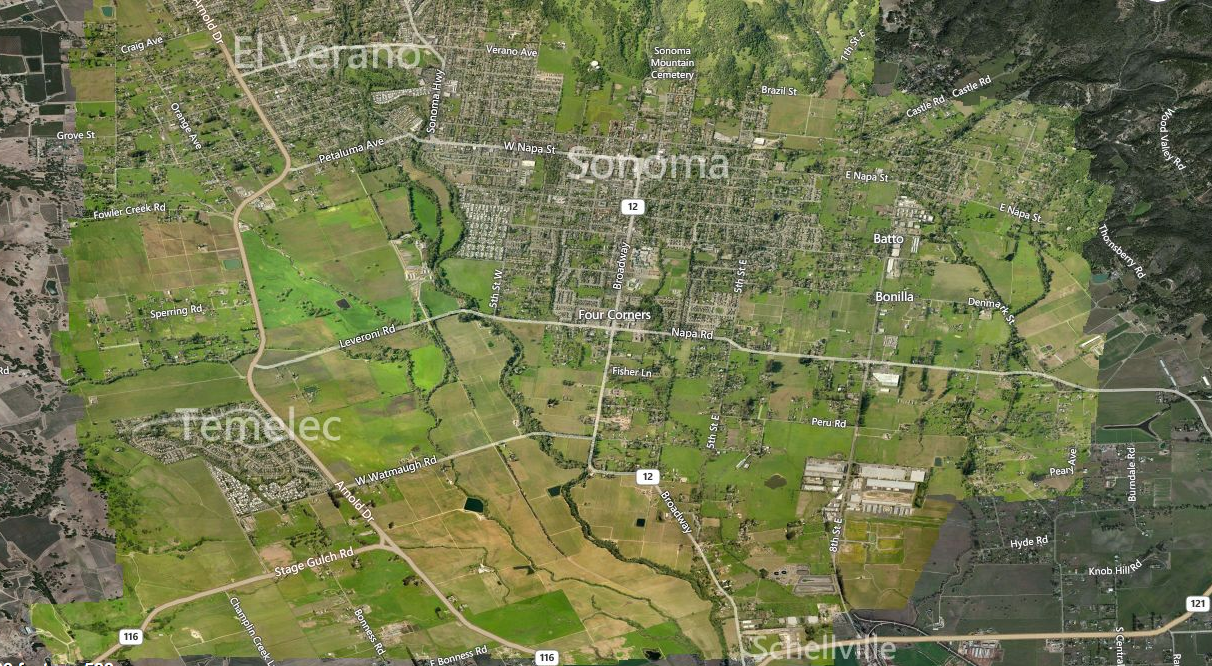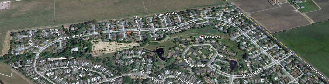 The community of Temelec, which includes the 325 homes within the Temelec HOA, extends from Arnold Drive along Temelec Circle, and south to Mission Drive.